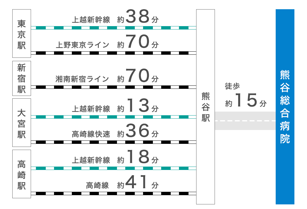 当院の最寄り駅はJR高崎線・上越新幹線・秩父鉄道「熊谷駅」です。