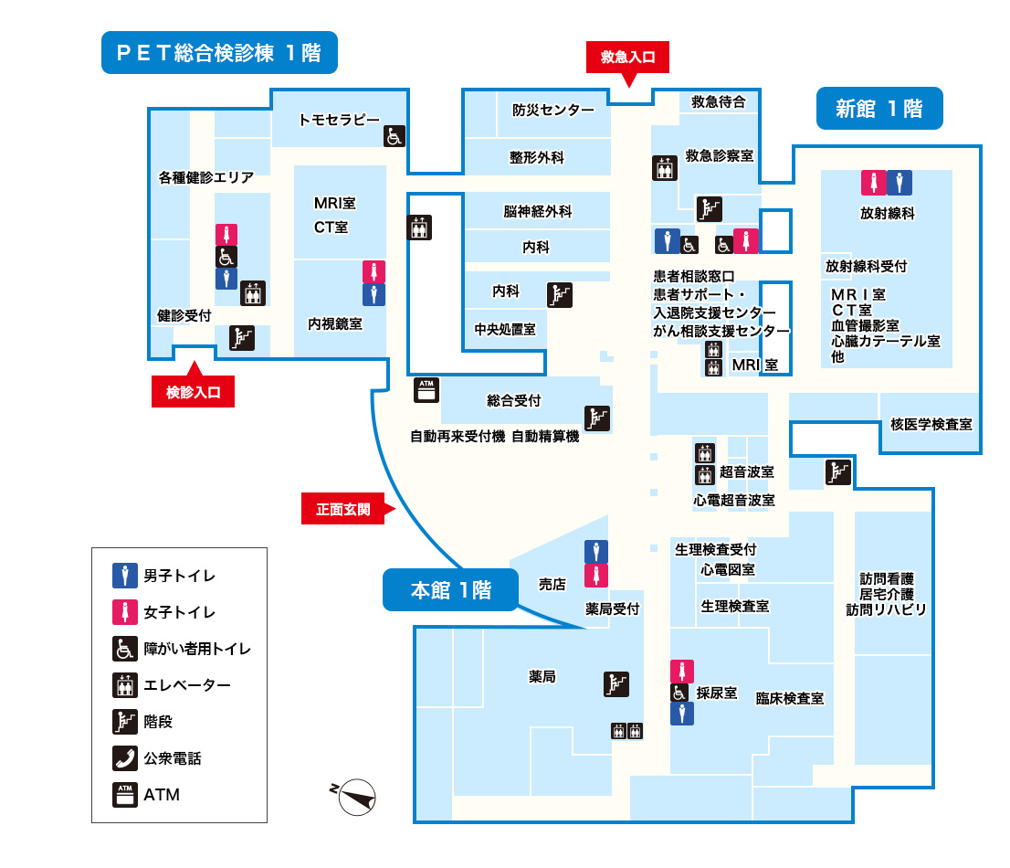 | 1階 | 健診センター、トモセラピー、内視鏡室、検診MRI・CT |
